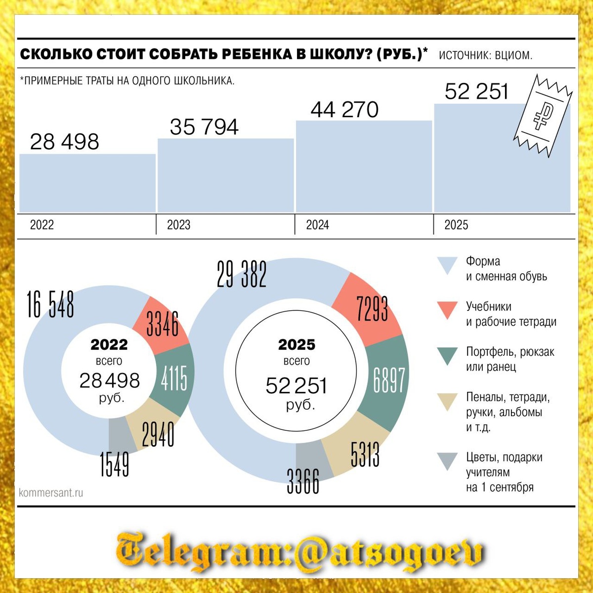 💼 Собрать ребенка в школу в этом году обойдется россиянам в 52,2 тыс
