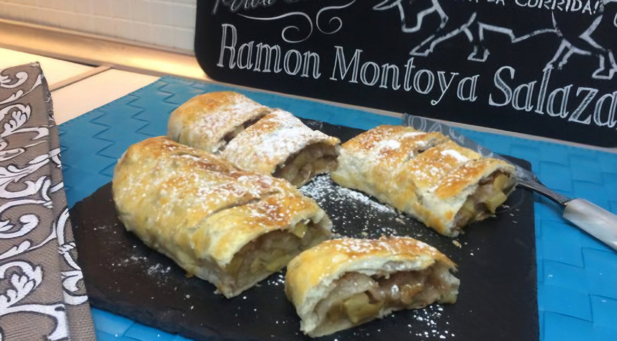 💁♀ яблочный Ленивый штрудель, присыпанный сахарной пудрой, что ещё может быть вкуснее с утренним кофе? 🥧☕️ 😽коты скажут - куриные головы, и тоже будут правы)) 📌ингредиенты: 2 листа бездрожжевого (или дрожжевого) слоеного теста 2-3 яблока, лучше кислых 2 ст.л сахара 1/2 чл корицы молотой 1 желток (для смазывания) 1 -2 ст.л измельч. грецких орехов 5 ст.л. сахара (можно коричневого) Лучше брать недрожжевое слоёное тесто, тогда штрудель получается восхитительно хрустящим своими тонкими воздушными слоями👌 Тесто разморозить; яблоки нарезать кубиками, добавить к ним сахар, корицу молодую и орехи грецкие . На раскатанное тесто выложить начинку, оставив половину начинки для второго пирога. Свернуть в рулет, швом вниз. Края пирога защипнуть и красиво подогнуть вниз. Сделать сверху легкие разрезы ножом. Все то же самое проделать и со вторым пирогом. Смазать пироги яйцом. ♨️Выпекать в предварительно разогретой духовке при 190С-200С 30-40 мин до золотистой корочки. Готовые штрудели по