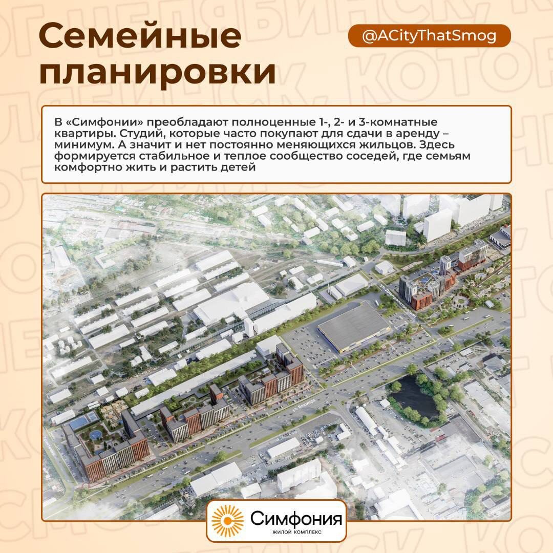 ЖК «Симфония» — комфорт и удобство для современной семьи «Симфония» в Челябинске — это жилой комплекс с продуманной инфраструктурой и комфортом на каждом шагу. Здесь строят дома разной этажности с современными фасадами и функциональными планировками. Жилой комплекс предлагает квартиры с чистовой отделкой и встроенной системой «Умный дом», семейные планировки, безопасные дворы без машин с безбарьерной средой, спортивные и детские площадки, зоны для выгула собак. В просторных подъездах предусмотрены колясочные, а для хранения вещей — кладовые. Для прогулок и отдыха у жителей «Симфонии» будет благоустроенный сквер с фонтаном. Сейчас в жилом комплексе «Симфония» идут продажи второй очереди. Успейте выбрать свою квартиру по максимально выгодной цене. Подробности на сайте жксимфония.рф и по телефону: (351) 245-15-15. Предложение носит информационный характер и не является публичной офертой. Застройщик — ООО СЗ СИМФОНИЯ ИНН: 7448247148, проектная декларация на сайте наш.дом.рф. Продажи ос