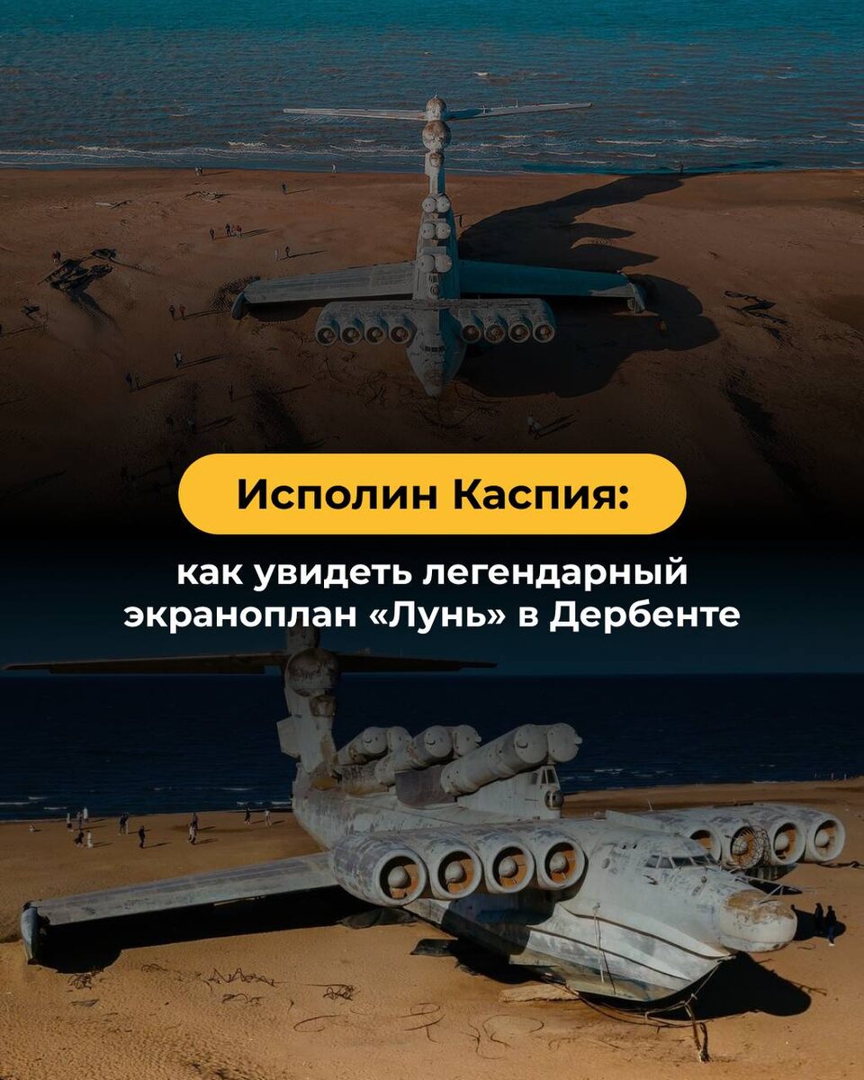 Готовы увидеть единственный в мире ракетный корабль-экраноплан? Тогда вам в Дербент! Сегодня этот уникальный артефакт занял свое почетное место на берегу Каспийского моря. Почему «Лунь» — это грандиозно? · Единственный в мире: был построен всего один такой экраноплан, и теперь вы можете увидеть его своими глазами. · Ракетный корабль: его главная задача — уничтожение авианосцев. На его палубе вы увидите шесть пусковых контейнеров для сверхзвуковых противокорабельных ракет «Москит». · Инженерный шедевр: 74 метра в длину, взлетный вес в 400 тонн и скорость под 500 км/ч над водой. Где его найти? Республика Дагестан, с. Арабляр (Моллакент), побережье Каспийского моря. Это примерно в 20 км к югу от Дербента. Как добраться до «Луня»? На автомобиле (самый удобный вариант!): · Маршрут: Из Дербента двигайтесь на юг по трассе в сторону с. Авадан. · Расстояние: около 19 км. · Время в пути: примерно 25-30 минут. · Что делать: Следите за указателями. Не доезжая до Авадана, будет поворот к морю,