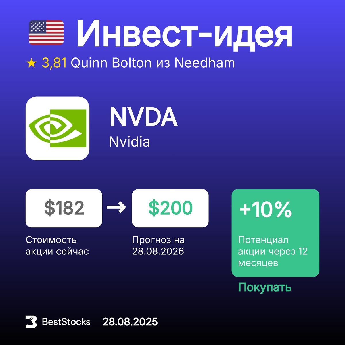 πΊπΈ ΠΠ½Π²Π΅ΡΡ-ΠΈΠ΄Π΅Ρ ΠΏΠΎ Π°ΠΊΡΠΈΠΈ Nvidia Π’ΠΈΠΊΠ΅Ρ: NVDA ΠΡΠΎΠ³Π½ΠΎΠ·Π½Π°Ρ ΡΠ΅Π½Π°: $200 (+10%) Π Π΅ΠΊΠΎΠΌΠ΅Π½Π΄Π°ΡΠΈΡ: ΠΠΎΠΊΡΠΏΠ°ΡΡ InvestRank Π°ΠΊΡΠΈΠΈ: 9 ΠΈΠ· 10 ΠΡΠΎΠ³Π½ΠΎΠ· ΡΠ΄Π΅Π»Π°Π½: 28.08.2025 ΠΡΠΎΠ³Π½ΠΎΠ· Π΄ΠΎ: 28.08.2026 ΠΠ½Π²Π΅ΡΡ-ΠΊΠΎΠΌΠΏΠ°Π½ΠΈΡ: Needham ΠΠ½Π°Π»ΠΈΡΠΈΠΊ: Quinn Bolton ΠΡΡ ΡΠ΅ΠΊΠΎΠΌΠ΅Π½Π΄Π°ΡΠΈΠΈ Π½Π° ΡΠ΅Π³ΠΎΠ΄Π½Ρ β β’β’β’β’β’ π₯ ΠΠΎΠ»ΡΡΠ°ΠΉΡΠ΅ Π±ΠΎΠ»Π΅Π΅ 400 ΡΠ²Π΅ΠΆΠΈΡ
