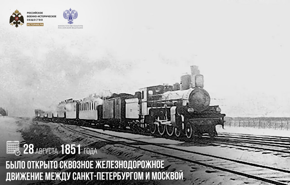 28 августа 1851 года было открыто сквозное железнодорожное движение между Санкт-Петербургом и Москвой