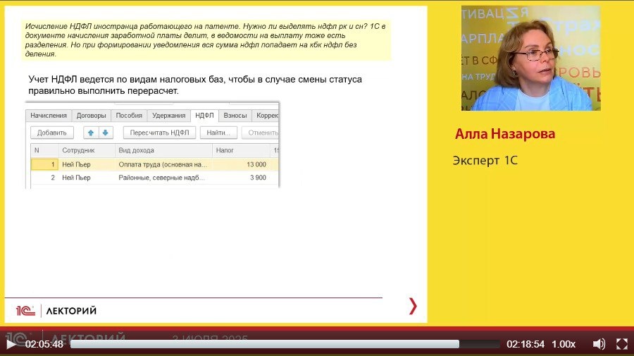 на этот и другие вопросы ответила Алла Назарова, эксперт 1С в лекции на тему Практика применения новшеств 2025 г. Сложные вопросы исчисления и перерасчета НДФЛ и формирования корректирующей отчетности