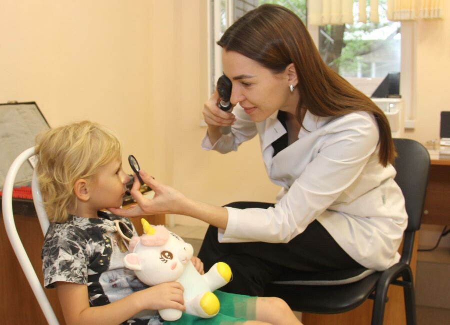 – Визуально, к примеру, мама может обратить внимание на то, что ребёнок стал больше щуриться, напрягаться, приближать что-то, может не сразу разглядеть что-то даже в очках, какие-то предметы. Но те родители, чьи дети стоят у нас на учёте, и так раз в полгода приводят детей. Мы проводим ребёнку необходимую диагностику и подбираем соответствующее лечение, – рассказывает Дарья Горбатко. – Косоглазие мамы тоже достаточно быстро замечают, особенно хорошо улавливается, что глаз расположен не так, как надо, на фотографиях.