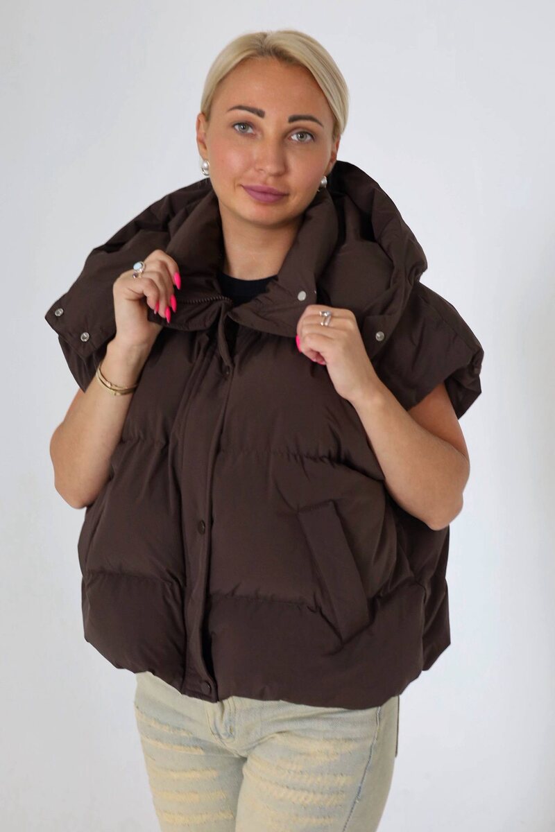 Жилет с капюшоном — 4300₽ Размер: oversize Состав: 100% пэ Наполнитель: холлофайбер 📌Размерная сетка: Жилет с капюшоном: Длина изделия: 56 Ширина изделия: 66 👉🏻 Рост Натальи 160 см Для заказа пишите менеджеру @Matrosova (+79022237939)