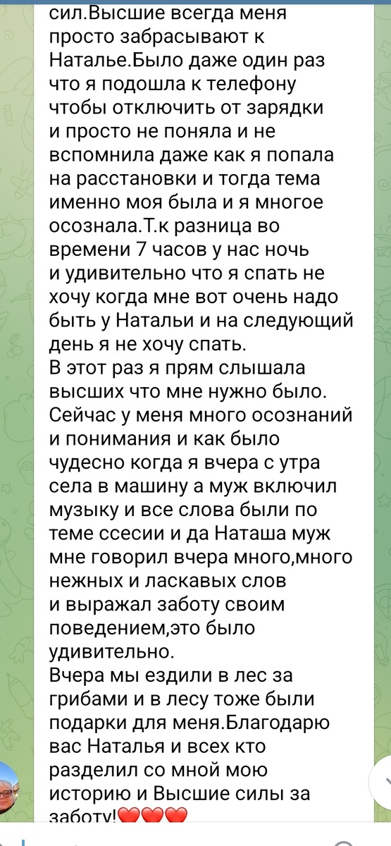 Комментирую нашу вторничную работу со Светланой в группе "Терапия Тела и Души", делюсь со всеми. Сначала читаем скрин, потом текст ниже. "Такие знаки и подтверждения от пространства подсказывают нам, что путь-дорожка выбрана туда. Наблюдайте, продолжайте шаги, которые увидели, выбирайте другие действия, и это все будет вкладом в то, чтобы болезнь не возвращалась. А вот счастье и спокойствие поселилось надолго в сердце и душе. На примере истории Светланы напишу для всей группы. Т. к. запросов на работу с телесными симптомами и хроническими вещами у нас было много. Следующий этап - "внедрение" того обьема, который мы получаем в работе. "Приземление" его и спускание с уровней 5, 4 на 3й (уровень системных процессов и поля), 2й (уровень программ, убеждений, реакций, эмоций), 1й (уровень действия) Так мы встраиваем новые понимания в тело (все уровни тел). От понимания на уровне души и света, Высшего Я, мы протягиваем работу как нитку через ментал, эфир, и т.д. Спускаем до физики, до с