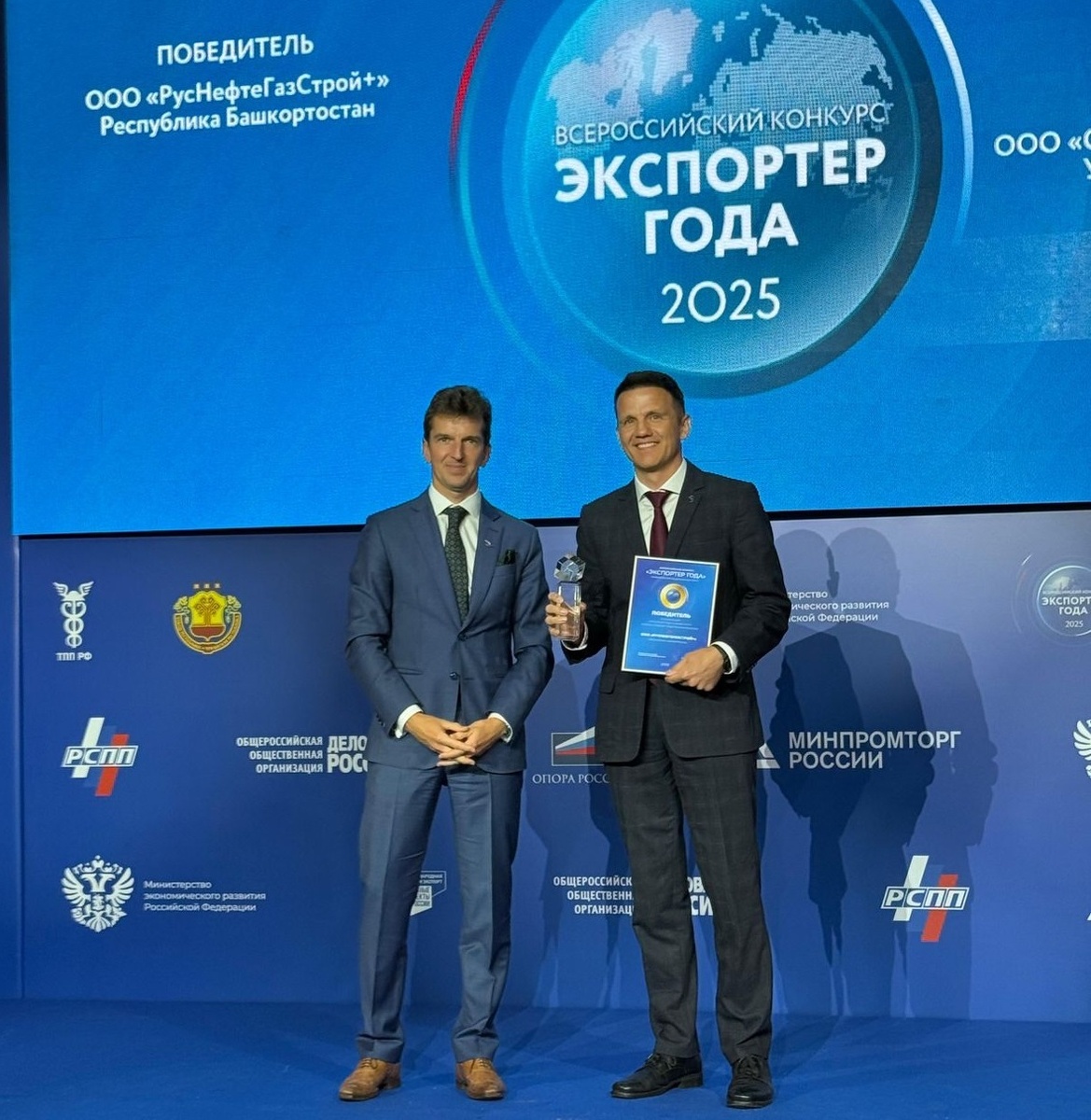 Экспортёры Башки рии также получили две награды в категории «Малые и средние предприятия». Компания «РусНефтеГазСтрой+» стала лучшей в номинации «Экспортер года в сфере услуг», второе место в номинации «Лучший экспортер в сфере электронной торговли» занял «Ураллесэкспорт».