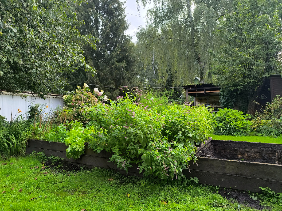 Но время шло, и грядки исчерпали свой технологический ресурс. Он стали утрачивать форму и покосились. При осмотре выяснилось, что изнутри доски прогнили в некоторых местах почти насквозь, ремонту конструкции не подлежат. Только демонтаж. Прошлой осенью демонтировали две грядки, просто времени и хорошей погоды не хватило на третью грядку. Она прослужила ещё один сезон. И то кое-как. Но вот пришла и её пора.