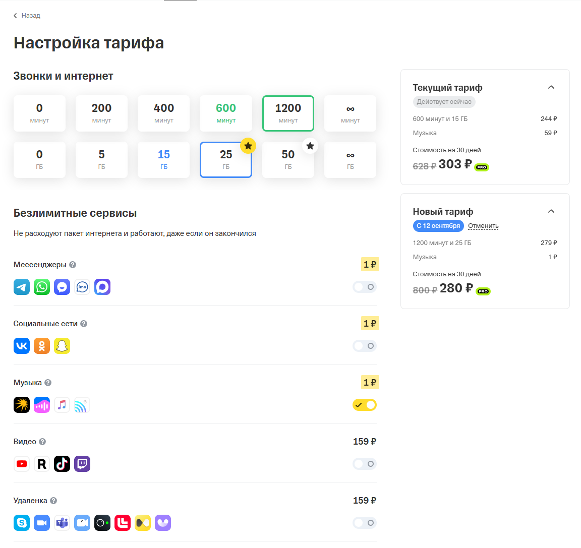Тариф в Т Мобайле снизили до 280 руб. за 1200 минут и 25 ГБ
