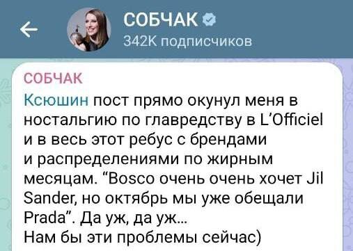 Если Героиню разбудят через 100 лет и спросят, чем сейчас занимается Ксения Собчак, то ответ будет прост — все еще вспоминает, как была главредом L’Officiel 🥹