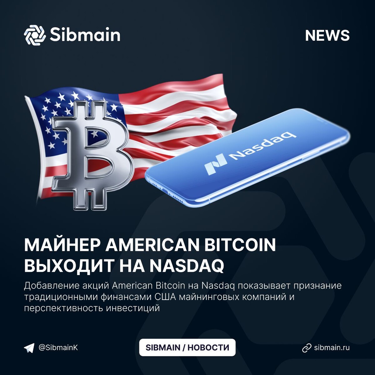 📰📰📰📰 ➡️Майнер American Bitcoin выходит на Nasdaq Майнинговая компания American Bitcoin после слияния с Gryphon Digital Mining планирует выйти на биржу Nasdaq. Причины размещения на биржи: ⏺Диверсификация источников финансирования; ⏺Привлечение внимания к компании; ⏺Дополнительные инвестиции 📍Добавление акций American Bitcoin на Nasdaq показывает признание традиционными финансами США майнинговых компаний и перспективность инвестиций