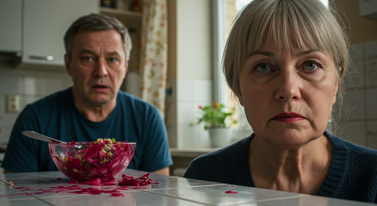 Марина закончила последний штрих — разровняла майонез ножом, создав идеально гладкую поверхность. Салатница была произведением искусства. Воплощение тридцати лет её служения. Она взяла салатницу в руки, подошла к мусорному ведру, открыла крышку и, перевернув, вывалила всё её содержимое внутрь. Свекольный сок брызнул на белый кафельный пол, как кровь.