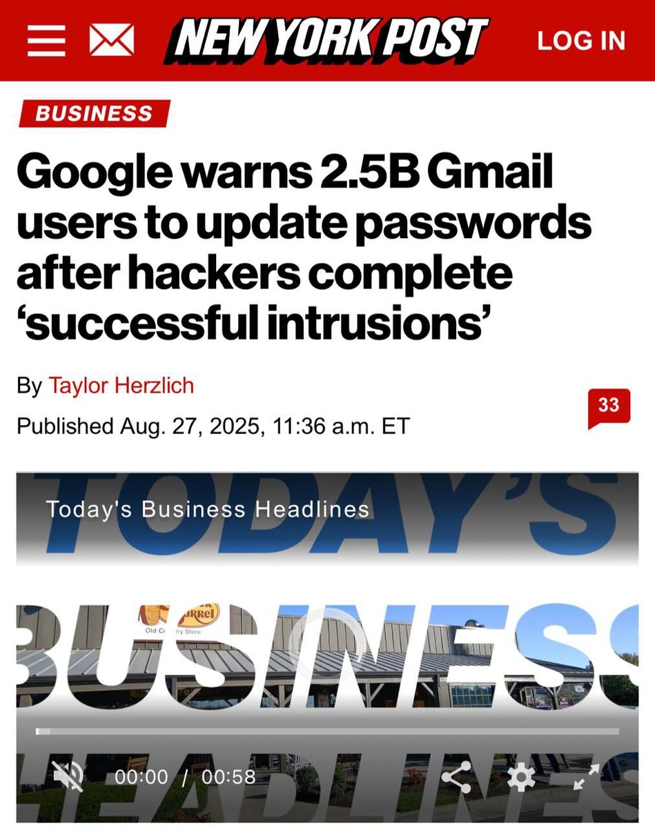 ‼️Внимание: 2,5 миллиарда пользователей Gmail оказались под угрозой — Google выпустила срочное предупреждение об активности хакеров