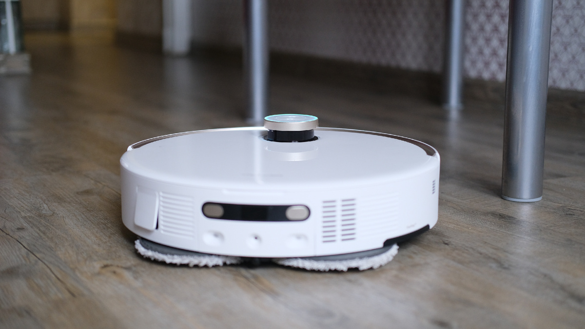 Конструкция корпуса Trouver V50 Ultra Complete классическая — кругляш с выступающим сверху лидаром. Однако этот датчик не фиксированный: в открытом пространстве он поднят, а при проезде под мебелью автоматически убирается. При этом уменьшается высота робота, поэтому он сможет проехать даже под относительно небольшим пространством дивана или дизайнерской тумбочки. На док-станции лидар также втягивается. А еще он эффектно светится, пока робот убирается в квартире или проходит очистку на станции.