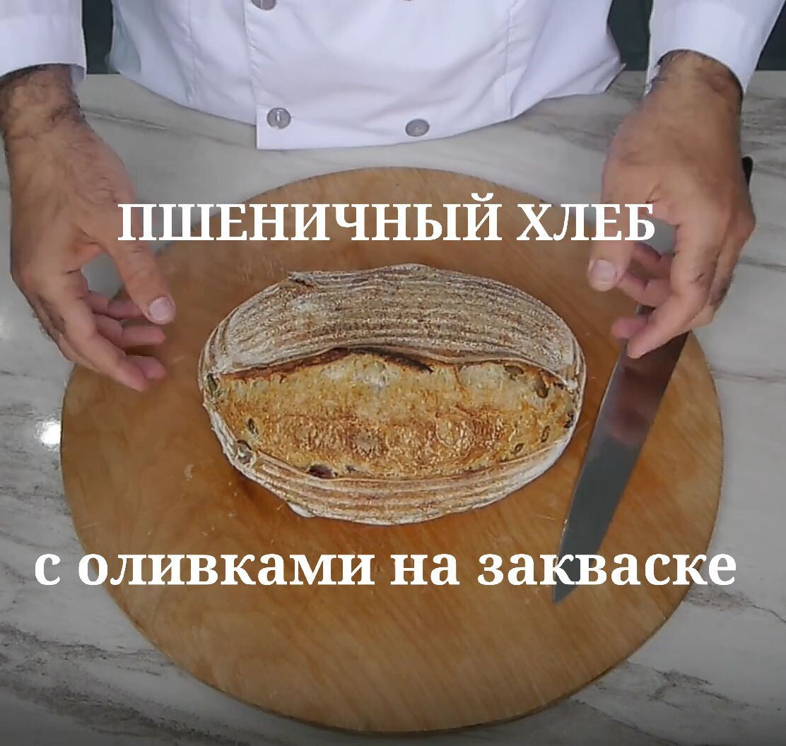 Пшеничный хлеб с оливками на закваске. Ручной замес. Холодная расстойка.