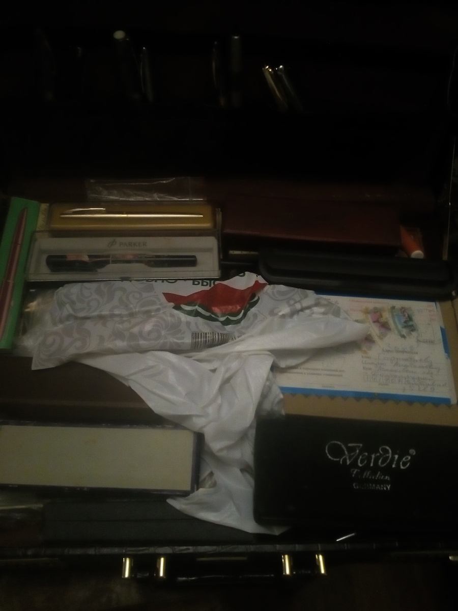 В "дипломате" ручки не особо нужные лежат (фото шариковых И перьевых китайских)