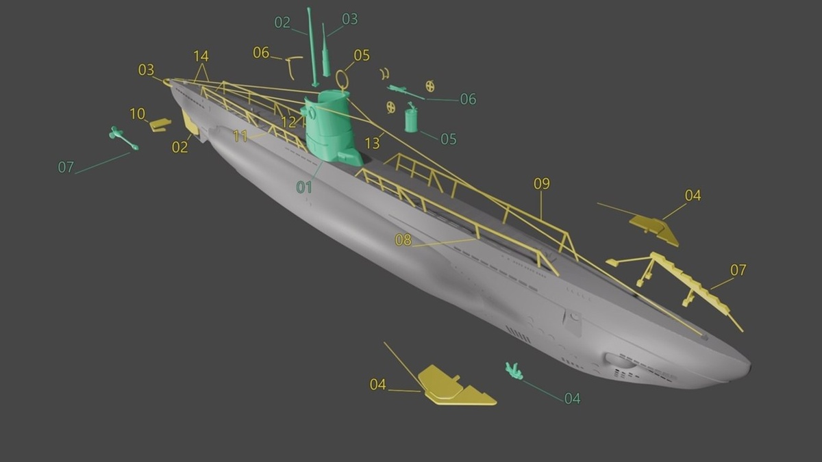 U Boat Laboratorium из Санкт-Петербурга выпустит на 3D-принтере модель немецкой подводной лодки Тип IIA в масштабе 1/350