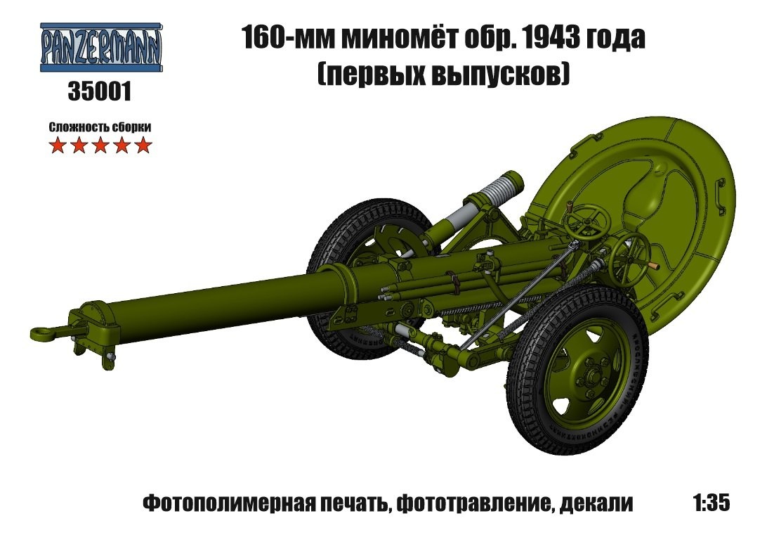 Panzermann из Волгограда осенью выпустит на 3D-принтере модель советского 160-мм миномета обр. 1943 г. в транспортном положении в масштабе 1/35. В комплекте фототравление и декали: 160-мм миномет обр. 1943 года (первых выпусков) - каталожный номер 35001