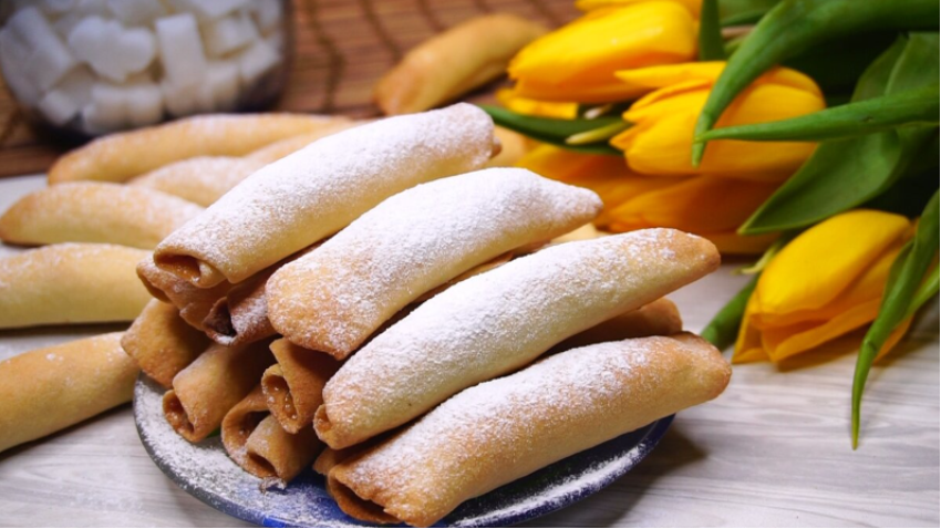 Печенье «Бармак». У этого печенья изумительный вкус. Готовится просто и быстро, а результат порадует всех. Для приготовления не нужны ни сода, ни разрыхлитель, ни дрожжи. Рецепт: Для начинки: Грецкий орех -100гр. Сахар -100гр. Вода -1ст.л.
