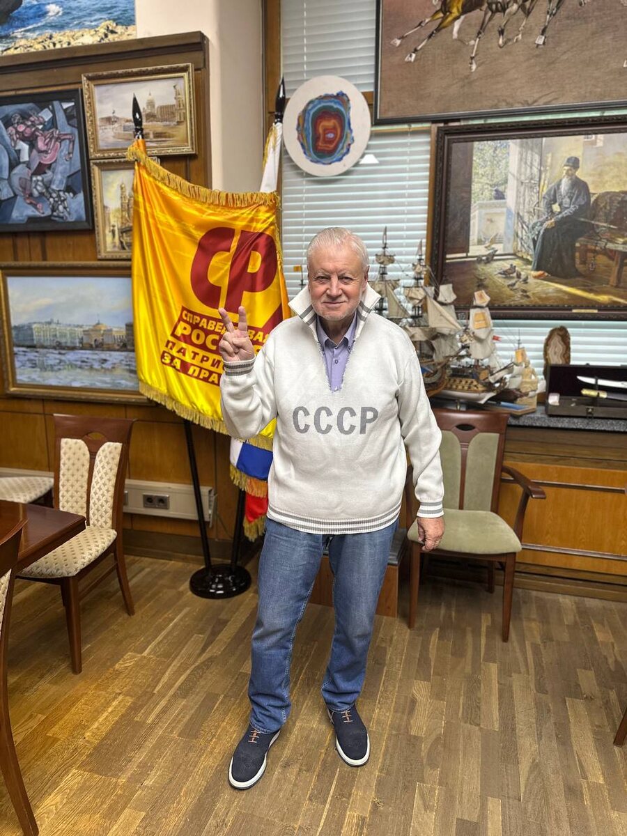 Вручила Лидеру Партии Сергею Миронову @mironovonline ставший уже всем известный Челябинский свитер СССР от бренда SelSovet.
