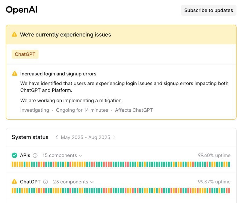 В ChatGPT наблюдаются сбои. Чат-бот загружается с переменным успехом, и некоторые пользователи не могут войти в свои аккаунты. Если у вас есть неотложные задачи, рекомендуем воспользоваться chatsgpts_bot — он работает без перебоев. Наш уютный канальчик 🤖 Анимация | СhatGPT-4 | Помощь с резюме
