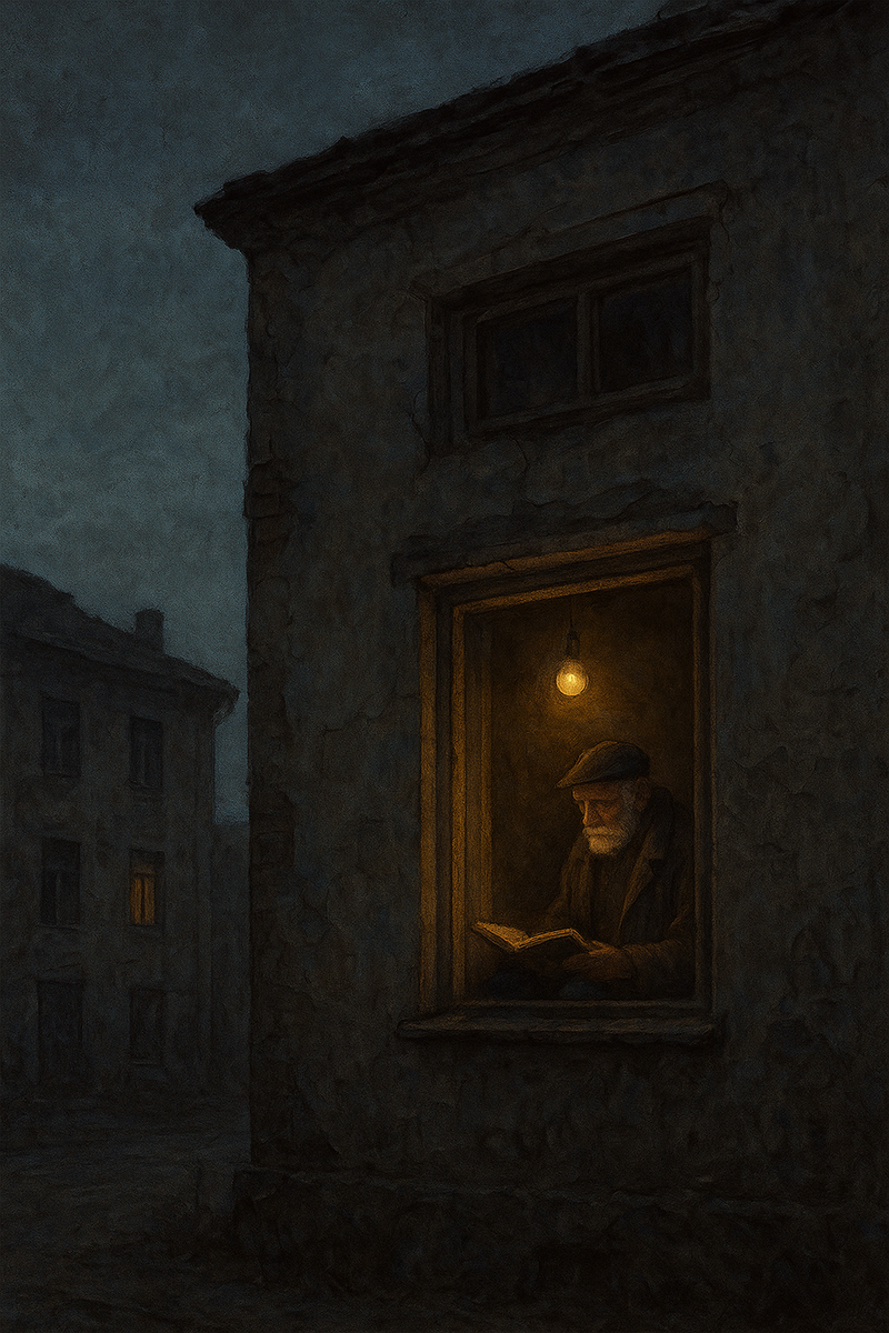 В маленьком городе на окраине стояла старая трёхэтажка. Дом был обшарпанным, с облупившейся штукатуркой, но жил в нём одинокий сторож. Он приходил каждый вечер, включал тусклую лампочку на первом этаже и сидел у окна с книгой. Соседи из ближайших домов привыкли к нему. Дети иногда дразнили: «Призрак в заброшке!» — и убегали. Взрослые качали головой: мол, странный человек, зачем сторожить руины? Но однажды молодой журналист, решивший собрать материалы о «городских легендах», пришёл к этому дому. — Здравствуйте, — сказал он, стуча в дверь.