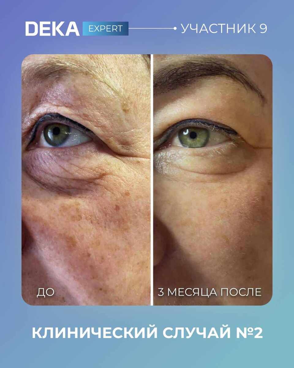 Участница №9 - второй клинический случай ❤️ Пациент – 52 года. Жалобы – растянутая кожа орбитальной зоны, нависшее веко, выглядела старше своих лет, кожа дряблая и морщинистая. Использовали CO2 с интервалом 3 месяца, 3 стека, нагрев 800, расстояние точки 350, мощность 9w. Интервал процедур 2 раза в 3 месяца. После первой процедуры мезококтейль Filorga NCTF, второй раз после второй шлифовки кололи cytolife (гиалуроновая кислота + цинк 0,8% (чтобы не было посттравматичной пигментации).