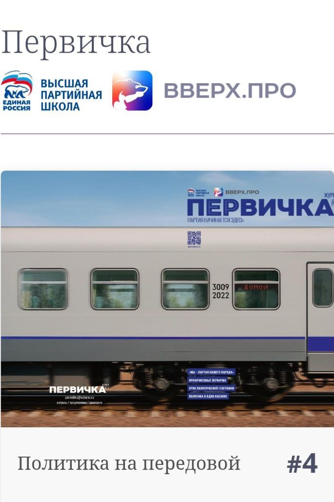 📢 В свет вышел четвертый, осенний номер внутрипартийного журнала «Первичка»! Как и было обещано, журнал стал настоящей площадкой для диалога, где есть место и для глубокого анализа, и для практических советов. Центральная тема этого выпуска — историческое воссоединение Донецкой и Луганской Народных Республик, Запорожской и Херсонской областей с Россией. Рассказывается не только о значении этого события для страны, но и, в первую очередь, о судьбах миллионов людей, которые наконец-то вернулись домой. Что еще ждет читателей в номере? 🔹 Эксклюзивное интервью с Председателем Высшего совета Партии Борисом Грызловым о стратегических задачах «Единой России». 🔹 Готовитесь к вызовам времени? Узнайте, как работает наша партия в прифронтовых регионах. 🔹 Полезные материалы для секретарей первичных отделений: как эффективно вести соцсети и создавать свой цифровой образ. 🔹 Лучшие инициативы от наших коллег из регионов. Читать онлайн: pervichka.er.ru Скачать PDF: clck.ru/3NtXZp #ЕдинаяРоссия