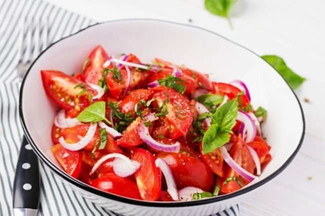Если вы истинный любитель ароматных салатов из спелых помидоров, обязательно попробуйте следующий рецепт. Он вам определенно понравится.