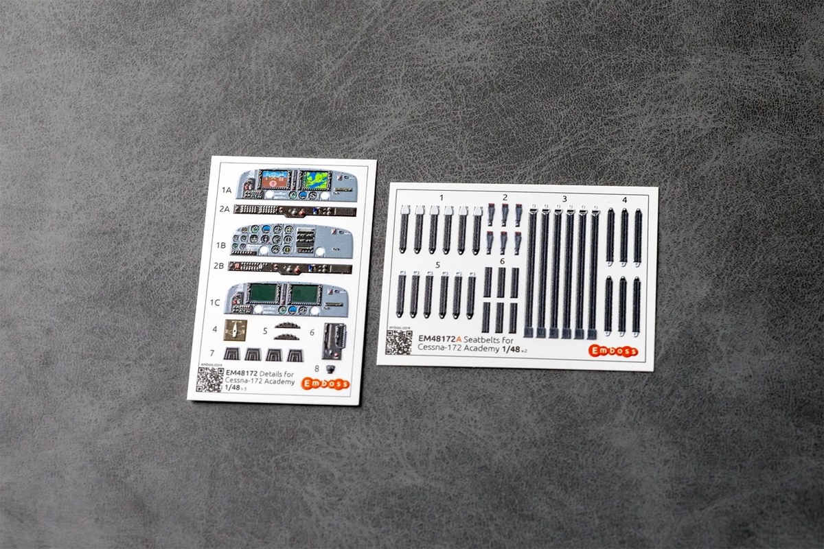 Emboss из Твери выпустила "трехмерную декаль" для деталировки кабины модели Cessna 172 в масштабе 1/48 от Academy