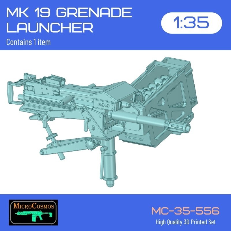3D MicroCosmos из Греции выпустила на 3D-принтере модель автоматического гранатомета Mk 19 в масштабе 1/35: Mk 19 Grenade Launcher (каталожный номер МС-35-556)