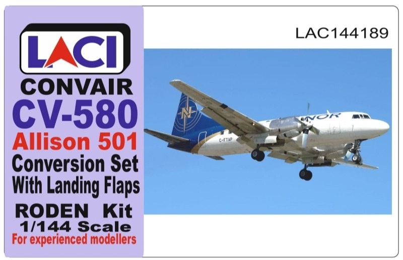 Английская LACI выпустила на 3D-принтере конверсионный набор и закрылки в выпущенном положении для модели Convair CV 580 Allison 501 в масштабе 1/144 от Roden.