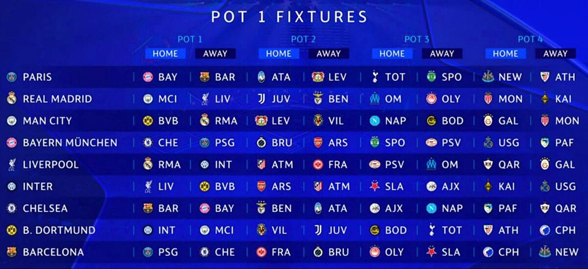 ❗️Итоги жеребьевки Лиги чемпионов для клубов первой корзины
