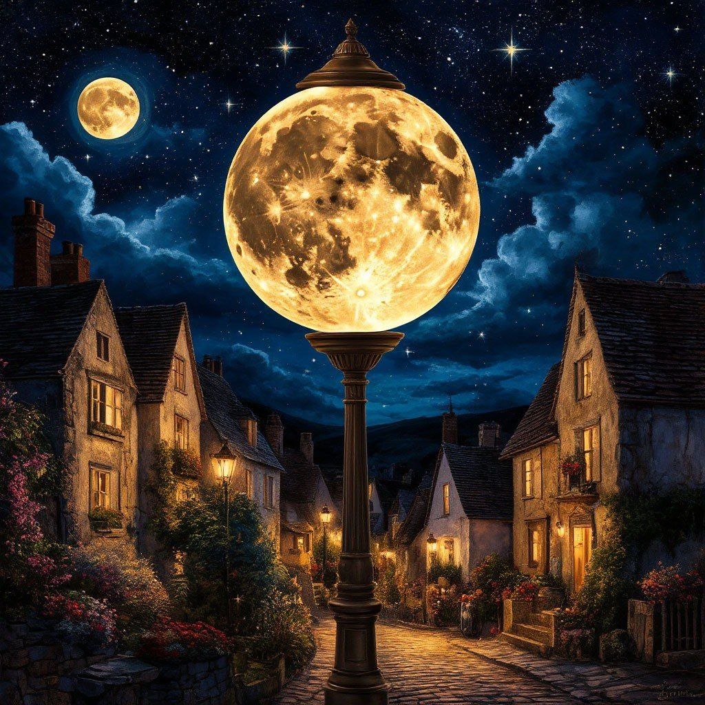 Шар луны под звездным абажуром, Озаряет спящий городок. Он извечный по небу дежурный, Охраняет каждый уголок. Тени длинные, скользят чуть робко, По стена́м домов, где мирно спят. Лишь сверчки стрекочут тихо, кротко, Нарушая сонный аромат. Спят дома, укрыты покрывалом, Сном, что дарит отдых и покой. Лёгкий ветер шепчет запоздало О любви, что бродит стороной. В окнах свет погас, лишь где-то тускло Лампы одинокие горят, Время катит по ночному руслу, И деревья сонные стоят. В переулках феи затаились, Фонари моргают невпопад. Лишь коты во мраке проявились, В мартовский отправились парад. Серебристый луч коснулся крыши, Отразился в луже невзначай. Тяготы попрятались, как мыши… В этой лунной сказке, не скучай. Сны гуляют, словно невидимки, Улочками бродят. Тишь да гладь. Страж – луна, чудесная картинка, Продолжает город охранять. ©Борис Френкель 14.03.2022