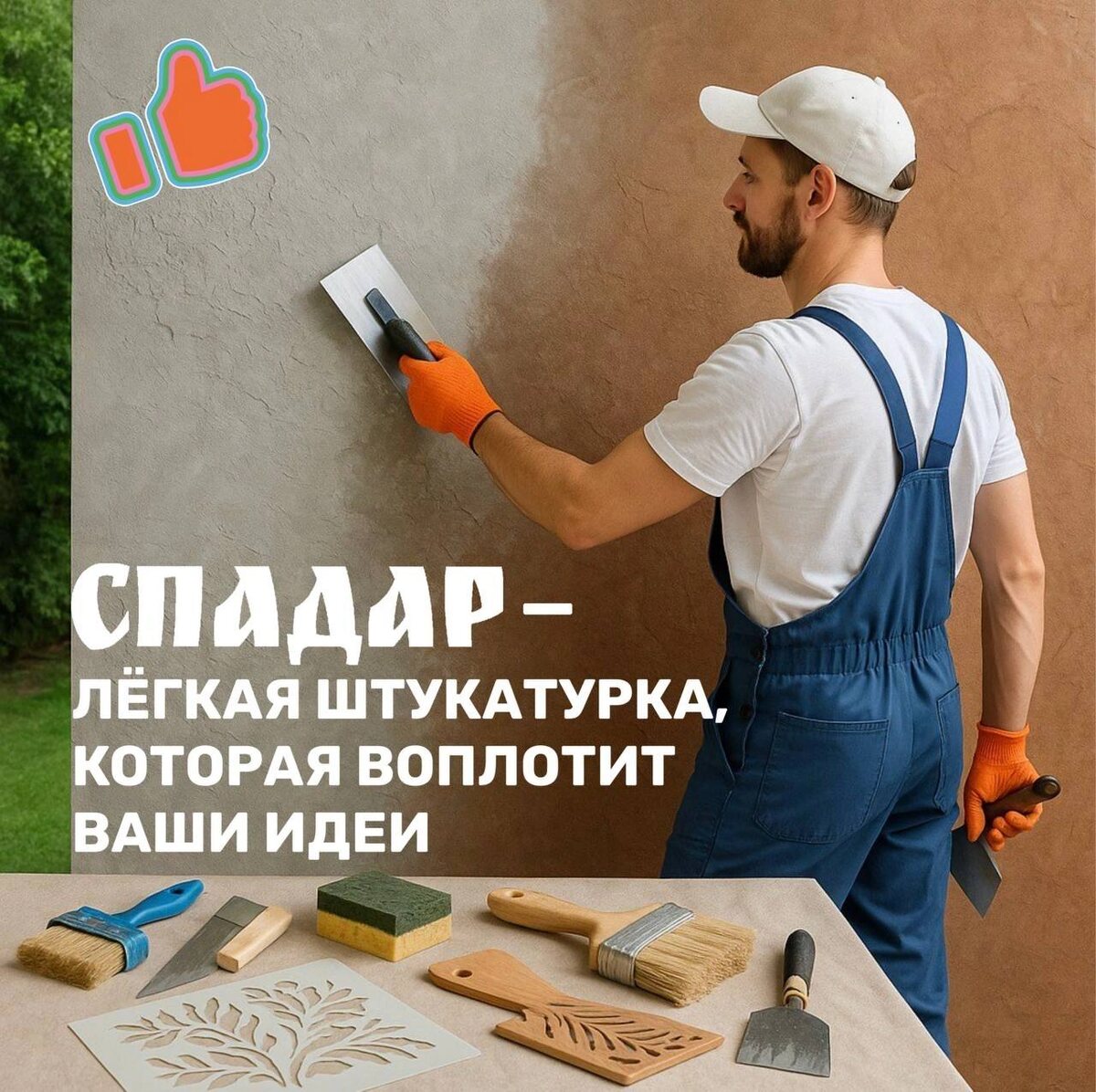 Лёгкая штукатурка Спадар пластична, податлива, прекрасно держится и подстраивается под руку мастера. Хотите гладкую стену? Пожалуйста. Мечтаете о рельефной поверхности под камень, мрамор или дерево? Еще проще. Шпатели, губки, кисти, трафареты — всё в руках мастера превращается в инструмент самовыражения 🛠💡