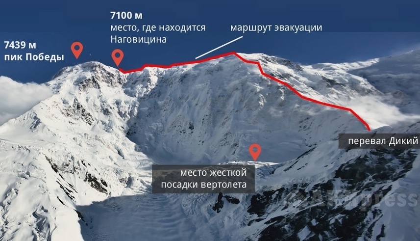 12 августа Наталья Наговицына вместе с командой - Романом Мокринским, немцем Гюнтером Зигмундом и итальянцем Лукой Синигильей - сумела достичь вершины пика Победы. Но в горах самое опасное не подъем, а именно спуск: на опасном участке гребня Нож спортсменка оступилась и получила тяжёлый перелом ноги. Пишут, что это - следствие не слишком хорошей экипировки и того, что на восхождение она решилась, не восстановив ногу после предыдущего перелома. Но это... пишут. Роман оттащил её в безопасное укрытие, и стал нагонять немца и итальянца, чтобы сообщить им о происшествии.