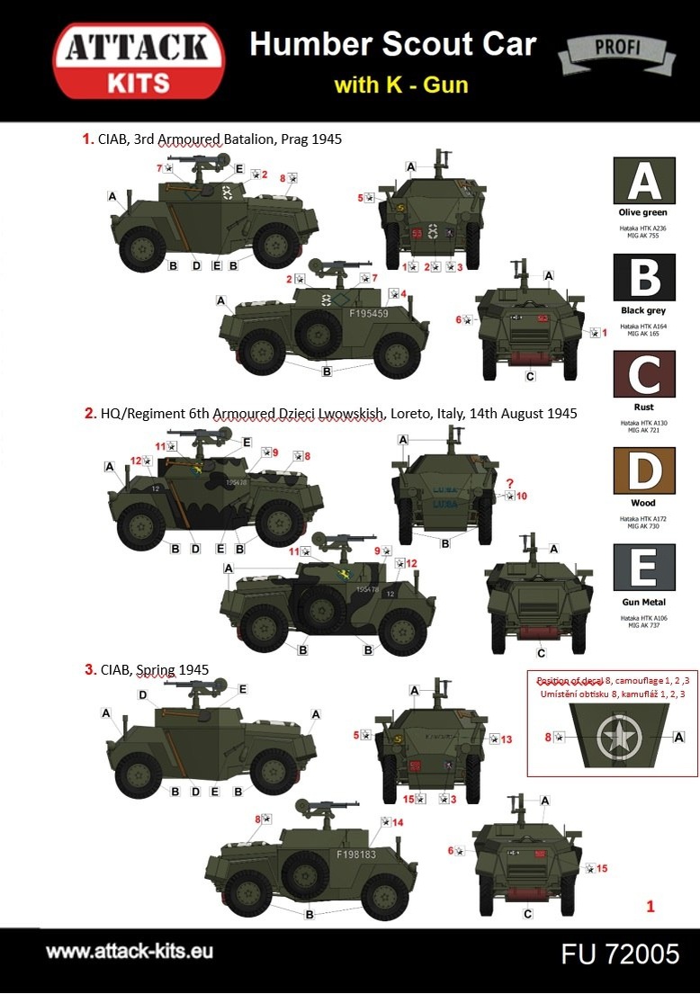 Attack kits из Чехии выпускает ограниченным тиражом разведывательный вариант своей модели английского бронеавтомобиля Humber разработки 2021 года в масштабе 1/72. Декали на два варианта окраски Чехословацкой бронебригады на Западном фронте и на один - польского бронеподразделения. Выращенные на 3D-принтере дополнительные детали и фигура командира машины.
