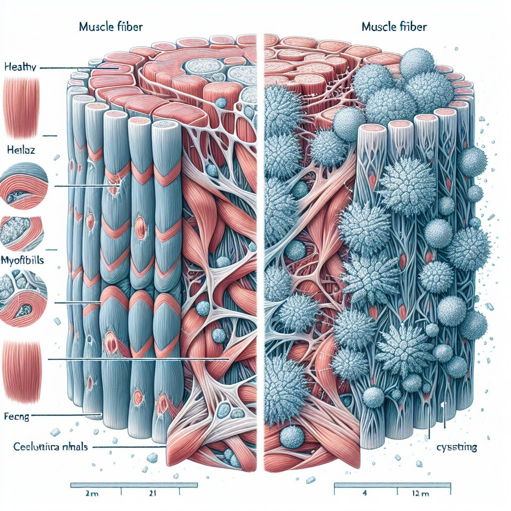 Вода внутри и вокруг мышечных клеток (миоцитов) превращается в кристаллы льда. Вот тут-то и кроется главная проблема: кристаллы льда острые. По мере роста они действуют как миллионы микроскопических лезвий, разрывающих клеточные мембраны и мышечные волокна.