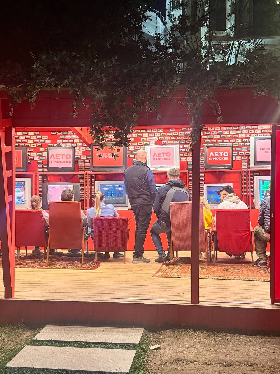 Развлечения для москвичей на Тверском бульваре в рамках проекта Лето в Москве достигли максимума: граждане натурально сидят и играют в восьмибитные игры.