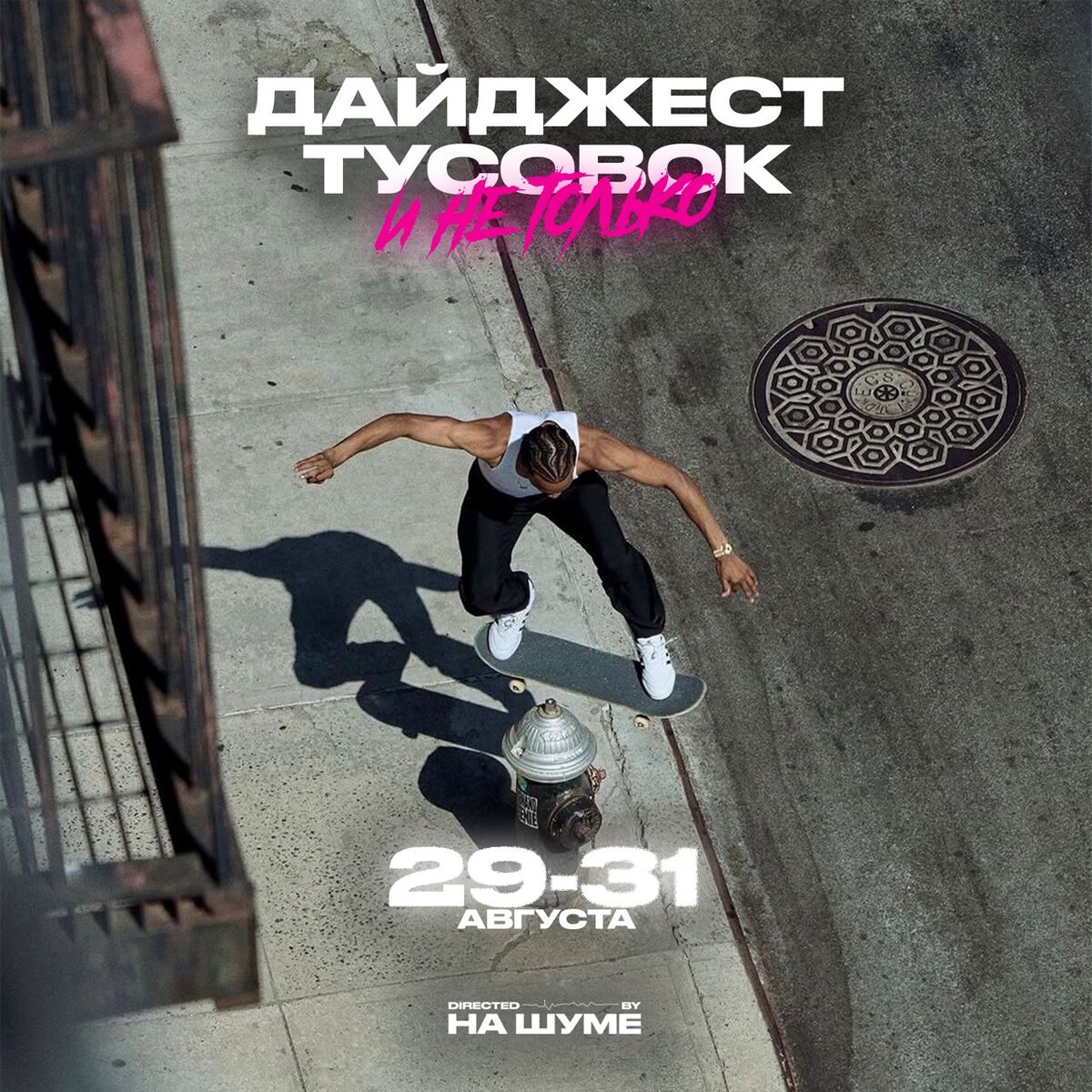 ДАЙДЖЕСТ ТУСОВОК И НЕ ТОЛЬКО МОСКВА Тусовка AFTERDARK на заводе «Кристалл» 29.08 Финалим лето под открытым небом с лайвами и экспериментальными сетами Simple Simmetey, Tim Obscure, тима ищет свет, Ilya Gadaev и др. А в галерее fābula не забываем посмотреть перформансы. Плюс в эту пятницу ждём неожиданные коллабы, гастрозону от «Ровесника» и UNDERDOG, кальянный лаунж от DARKSIDE, арт-зону и тату-корнер. Локация: Самокатная ул., 4с11 Вечеринка в Madame Roche 30.08 Ловите рецепт идеального вечера от ребят: изысканная кухня, 5 техно-артистов и первый DJ-сет Саши Бортич на топовой акустике Peqoud. Локация: Кожевническая ул., 16с4 Тусовка Back to School x LOVEMACHINE в «Ровеснике» 30.08 Будем ностальгировать по школьным временам, но без скучных уроков. Вместо них — топовое музло, те самые сосиски в тесте и турниры по мафии на переменах между диджей-сетами. Локация: Малый Гнездниковский пер., 9/2 Вечеринка CAD MAGAZINE x DELAY x «ОКНО» 30.08 Двор «Окна» превратится в танцпол с сетами