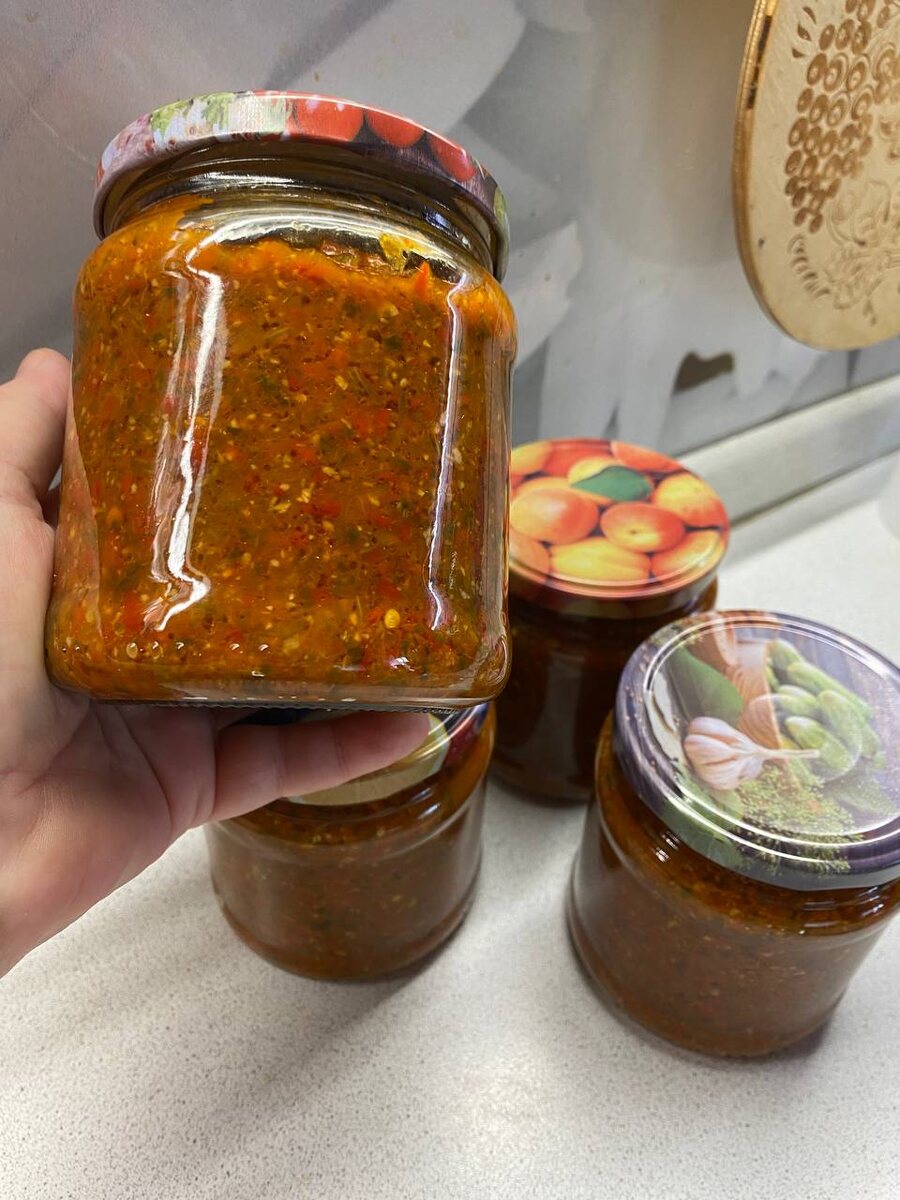 Аджика. Занималась заготовками на зиму. Получились 4 баночки аджики. Кроме острого перца все ингредиенты со своего огорода. Рецептом делюсь.
