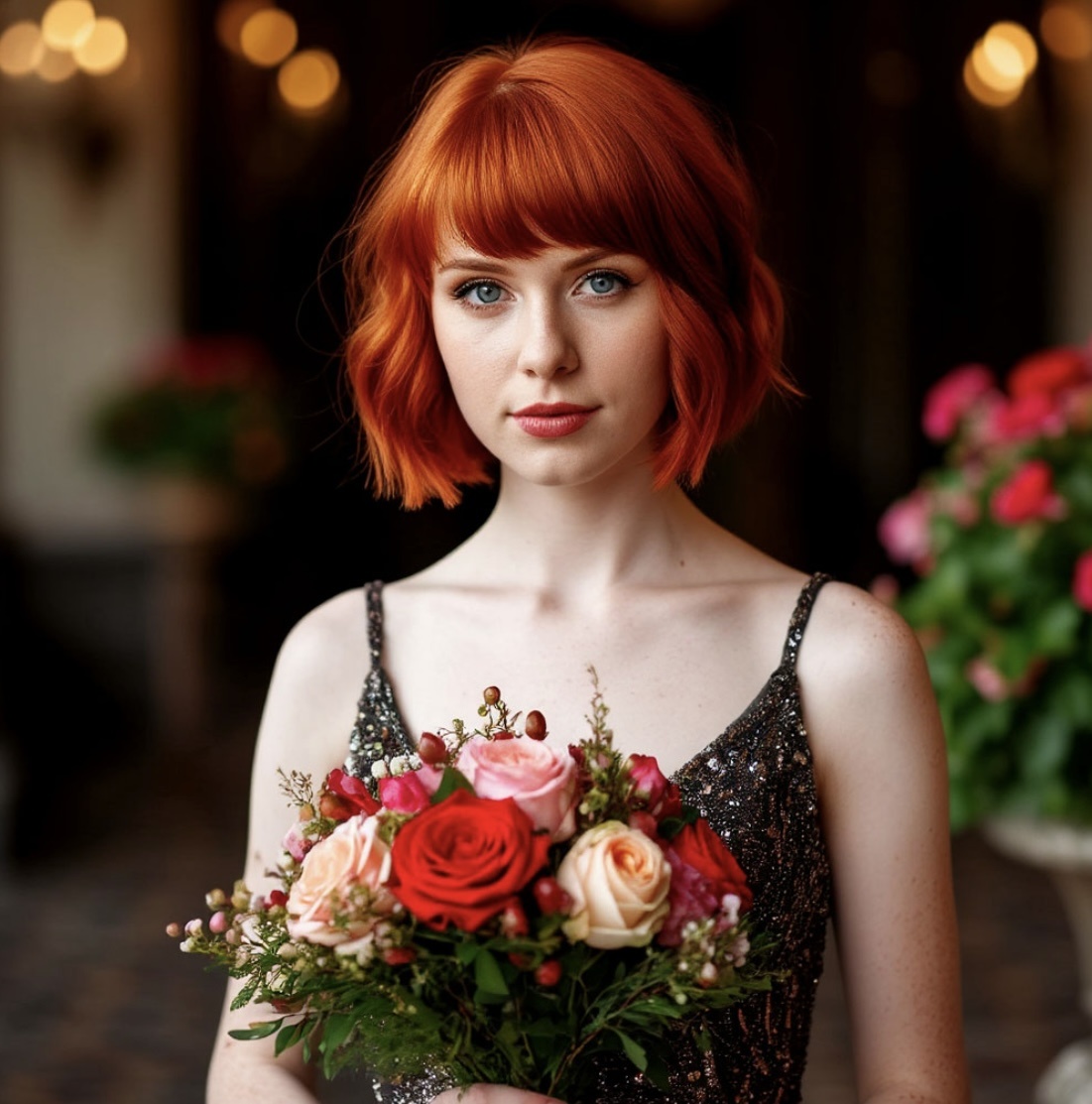 Вера повернулась ко всем спиной и бросила свадебный букет в толпу гостей .