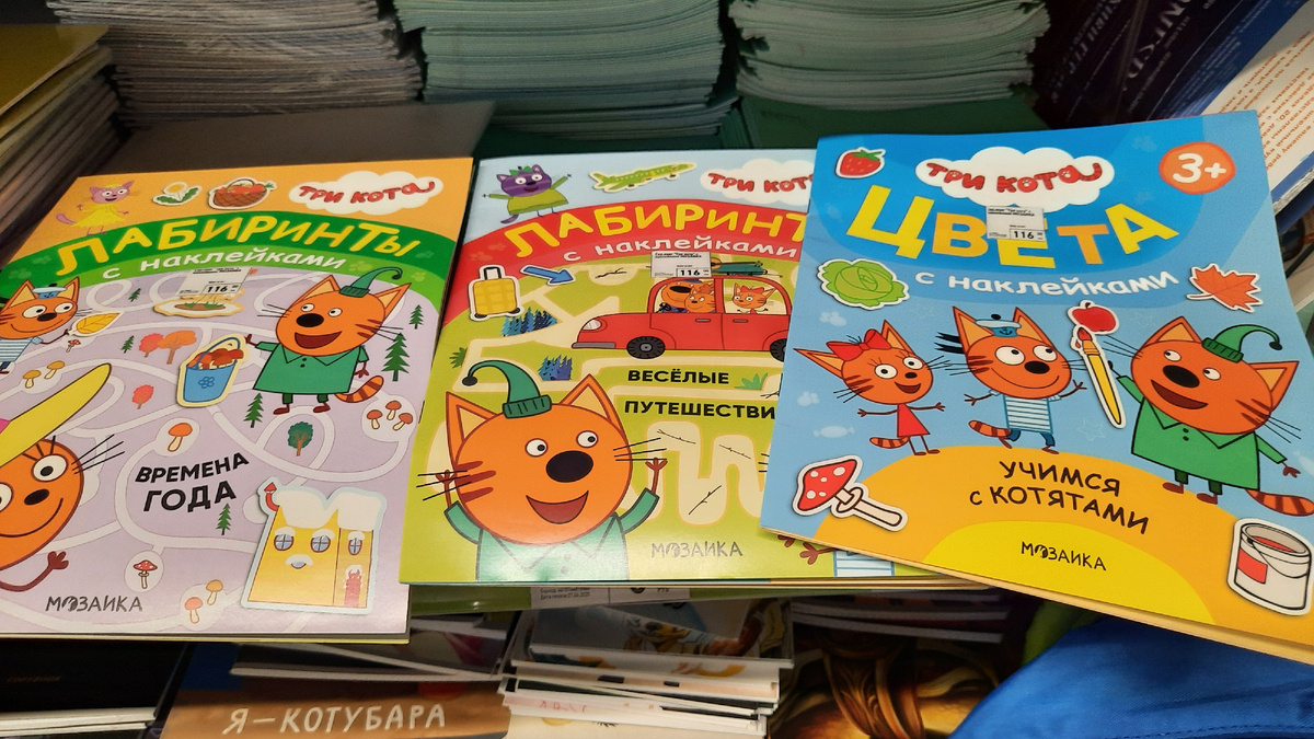Серия книг с наклейками "Три кота" – увлекательные развивающие задания с любимыми персонажами! Для детей от 3 лет. Цена 116 рублей.