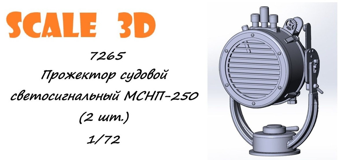 Scale_3D из Новосибирска выпустила на 3D-принтере модель судового светосигнального прожектора МСНП-250 (по 2 шт. в каждом наборе) в масштабах 1/72 и 1/35: