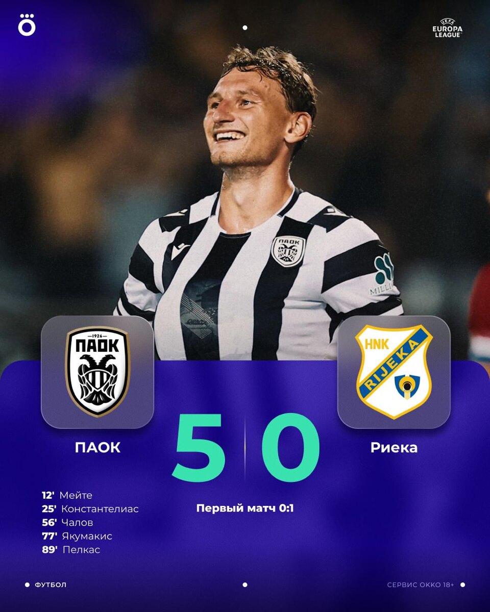 ПАОК сыграет в Лиге Европы! Разгромили «Риеку» в ответном матче ❗️