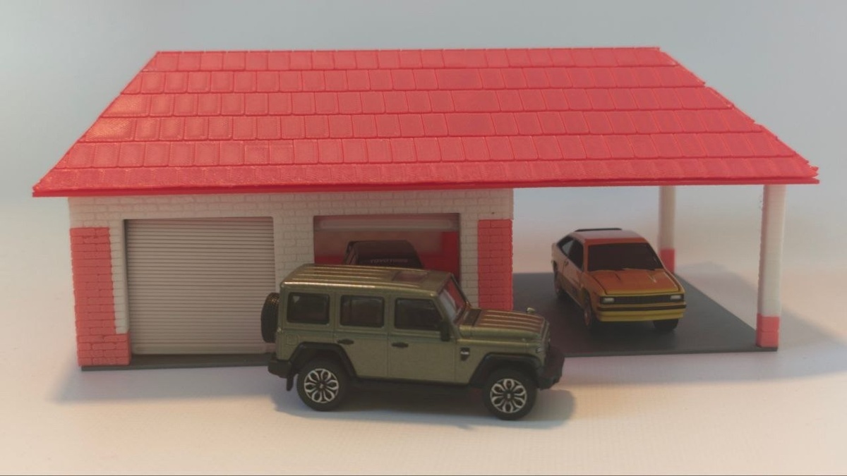 Гомельская ScaleModels72 выпустила на FDM-принтере из цветного PLA пластика сборную модель гаража в масштабе 1/64.