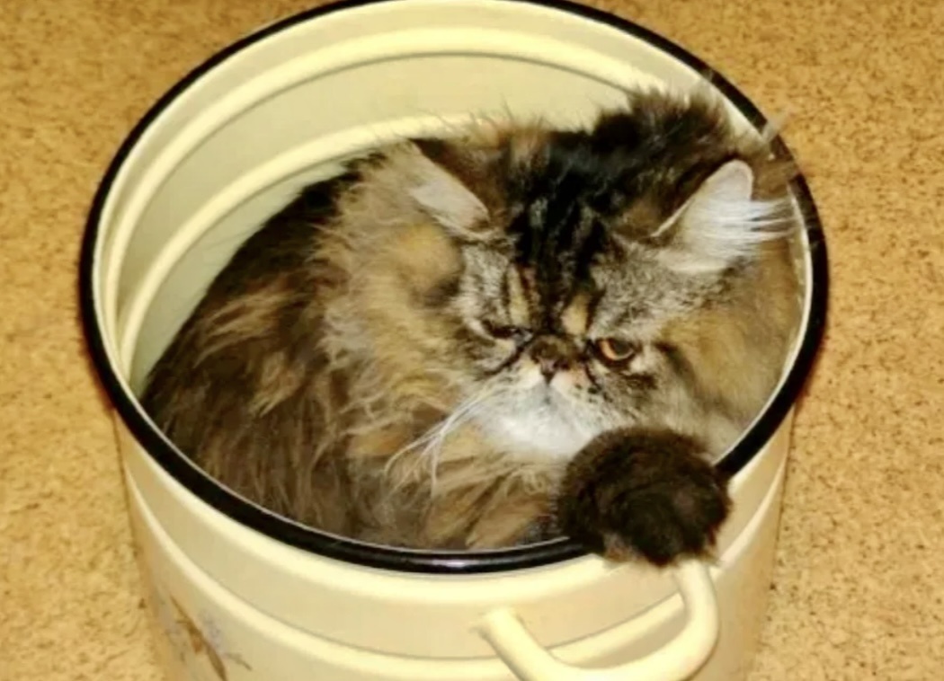 Этот пушистый аскет, кажется, нашел идеальное место для медитации – перевернутое мусорное ведро.