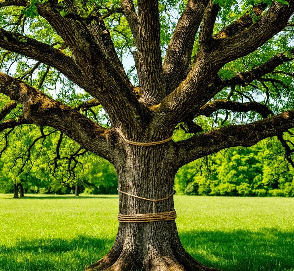 Купите корабельную веревку, с ней пойдите в лес или парк. Не забудьтк подношение Енарею. Найдите в лесу дуб, силой богатый, старый. Обвяжите вокруг ствола его веревку корабельную в шесть кругов и завяжите на шесть узлов. Оставшийся конец тяните на себя, как будто дуб из земли вырвать пытаетесь и 6 раз в это время прочитайте заговорные слова.