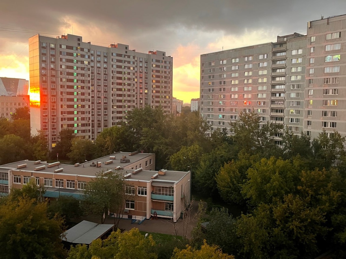 На фотографии закатное солнце отражается на доме №8 на Солдатском переулке, в окнах общежития МЭИ и уже не касается детского садика.