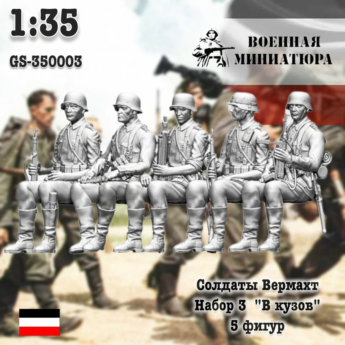 Ставропольская "Военная миниатюра" выпускает на 3D-принтере фигуры солдат вермахта для посадки в кузов грузовика и, в принципе, на любую технику в масштабах 1/72, 1/43, 1/35 и 1/16.